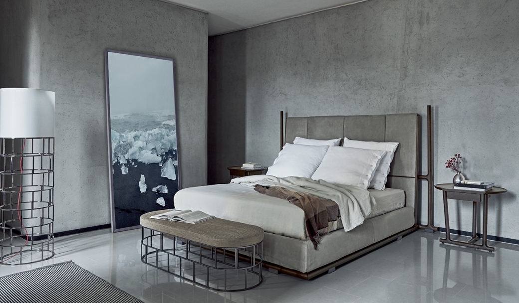 這是一個精致的系列,包括臺燈、長凳、沙發(fā)凳與茶幾,特點(diǎn)在于獨(dú)具一格的金屬底座。橢圓形的金屬結(jié)構(gòu)設(shè)計(jì),環(huán)形內(nèi)穿插著垂直桿,表面處理有磨砂、鍍鉻、磨光、黑鉻、鍍銅和香檳色,標(biāo)志著絕對的輕盈。坐墊面料無論是布藝還是真皮,都完全可拆卸。