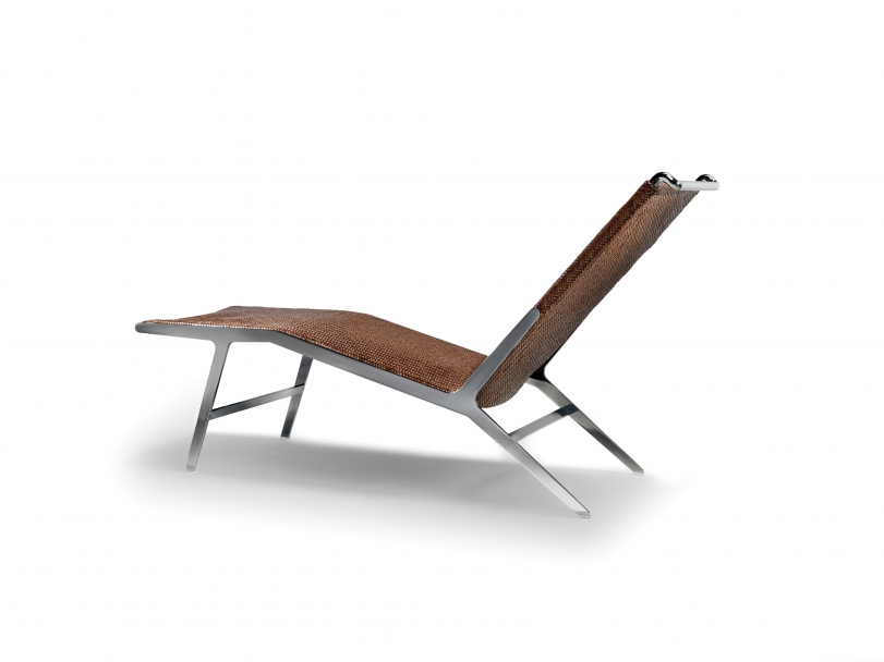 Helen躺椅無疑具有強(qiáng)烈的個(gè)性,在任何環(huán)境內(nèi)都可擔(dān)當(dāng)主角。 Helen躺椅特有曲線玲瓏的輪廓,金屬結(jié)構(gòu)造型優(yōu)雅,表面處理有磨砂、鍍鉻、磨光、黑鉻和香檳色。 設(shè)計(jì)的核心在于選用了皮革這一款高雅名貴的材質(zhì),特別符合Flexform的風(fēng)格,此處推出了考究獨(dú)特的魚翅紋編織,完全以手工制作。