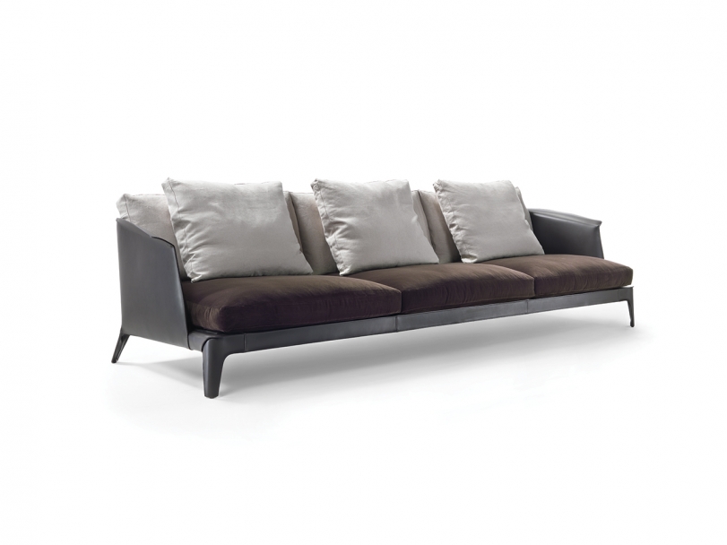 這款沙發的設計,取決于皮革這款高貴百搭的面料的內在表現力。 Isabel沙發內涵豐富,做工精細,線條簡潔洗練。靠背由一個包圍身體的金屬外殼構成,表面完全覆蓋皮革,構成扶手的延伸,扶手兩端略向外打開,在皮革表面形成輕微的皺褶,令人聯想起日本的折紙藝術。 Isabel沙發的特點是甜美優雅,由皮革搭配織物或真皮,可選擇同色或裝色對比,展現更鮮明的個性。