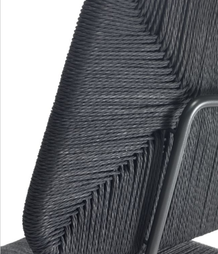 其結構顯示出大膽的材料對比:結構采用光滑的金屬制成,而座椅和靠背則由細編織紙或拉絲紙制成–復雜的工藝使人聯想到傳統方法,并且仍完全由手工完成。