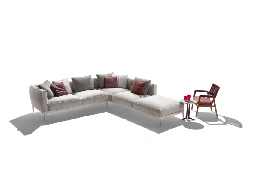Atlante沙發采用現代風格。軟墊坐墊的大尺寸抵消了金屬結構的緊縮感,優雅的羅緞滾邊勾勒出其柔和而溫馨的形狀。