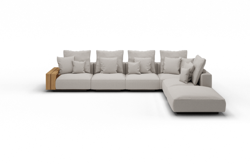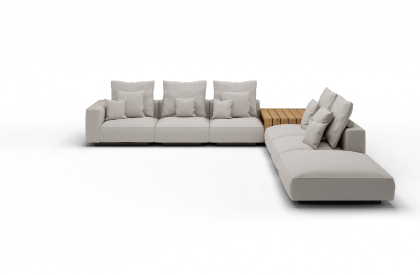 Grandemare戶外座椅系統具有模塊化的特點,可鼓勵各種可能的布置方式,并且可以搭配由實心iroko板條和光滑的金屬合金墊片制成的同名咖啡桌。
