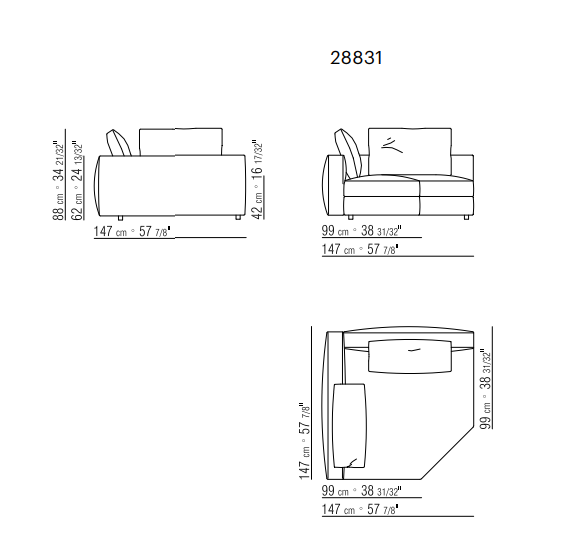 Made of thin metal sheet clad in cowhide and available in two widths, the armrests are tailored to perform various functions. The compartment can be used to store throws, magazines, books; the handy shelf provides at-hand organization of everyday items, like remotes.