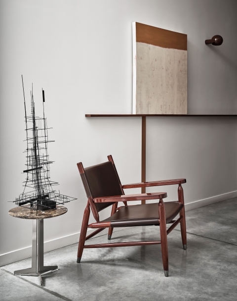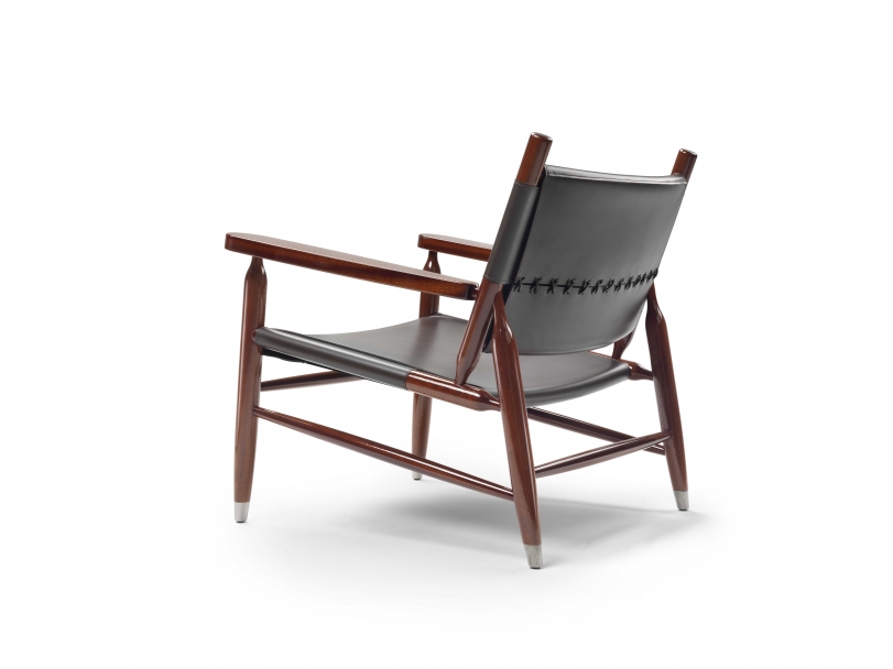 The Tessa S.H. armchair is an iconic combination of a wood structure crafted in the fine Italian cabinetmaking tradition and a quintessential, timeless material like cowhide.
