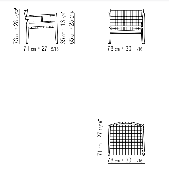 The solid wood structure – in ash and Canaletto walnut – is entirely hand-crafted, as are the woven backrest and seat made of paper rush cord. This old-fashioned but completely natural material with excellent resistance to wear is revived here as a tribute to tradition, with the satisfaction of creating something that will last a lifetime and be passed down to the next generations.