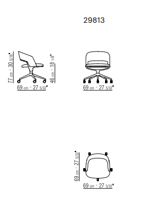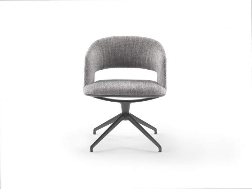 Sleek and graceful, thanks to the aluminum swivel base, the Alma small armchair meets the increasingly widespread demand for a home office space, yet is equally at home in the workplace ? in executive offices, meeting rooms or luxurious conference rooms.