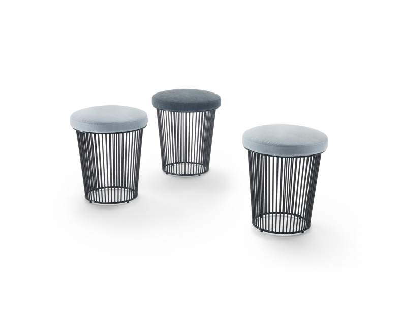 Countless combinations are possible between the metal base in a variety of finishes and the comfy padded cushion that can be upholstered in any of the fabrics and leathers in the Flexform collection.