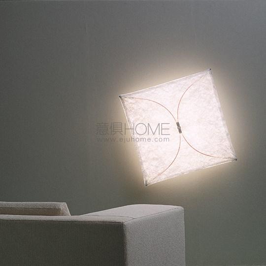 Wall or ceiling-mounted lamp providing diffused light. Synthetic fabric diffuser. 30% fiberglass reinforced polyamide ceiling/wall fitting.