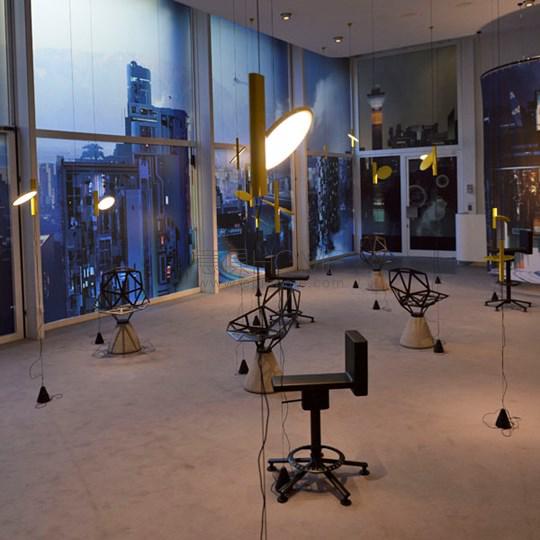Lamp providing direct light. Head in gloss varnished or chromed die-cast aluminium. Body in injection-stamped PA66+30%FV with cover in gloss varnished or chromed die-cast aluminium. Orientable head. The light fitting can be moved vertically by running the internal structure of the body on a steel cable tensioned between the ceiling and the floor (useful length 4000mm). Dimmable switch with Soft Touch technology. Adaptor on plug connector with interchangeable plugs.