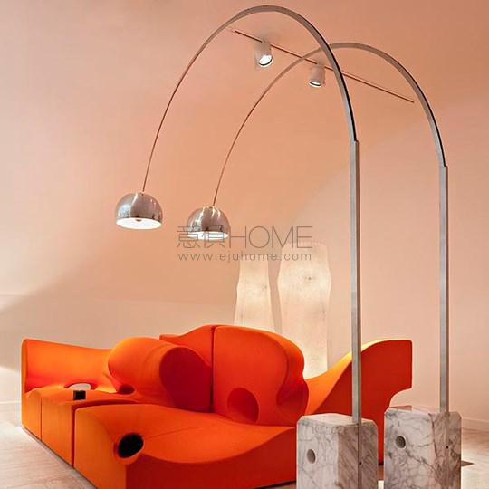 Floor lamp providing direct light. White Carrara marble base. Satin-finish stainless steel telescopic stem. Pressed, polished and zapon-varnished aluminum swiveling and height-adjustable reflector.