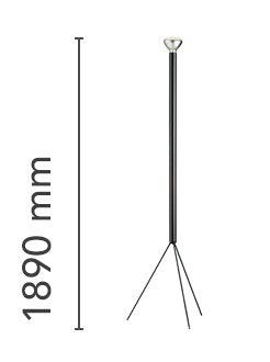 Floor lamp providing indirect light. Bulb with reflector. Iron stem with vitrified enamel finish. Painted galvanized metal legs.