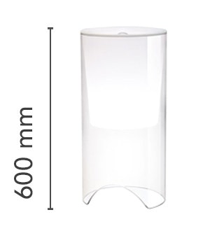 Table lamp providing diffused light. Clear glass cylindrical lamp body. White opaline glass diffuser and reflector.