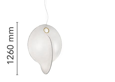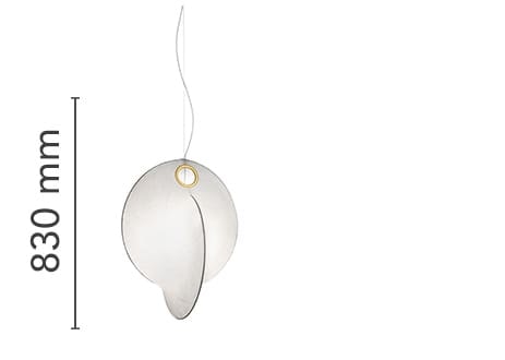Suspended lamp with diffused light. Internal structure in white powder painted steel. Resin diffuser Cocoon sprayed on the structure, with a transparent protection created by spraying at the end of the machining, ring for substitution of printed steel diffuser in polished, Gold-plated "Galvanic" finish. Die-cast rose in Zama polished and Gold-plated "Galvanic" finish.