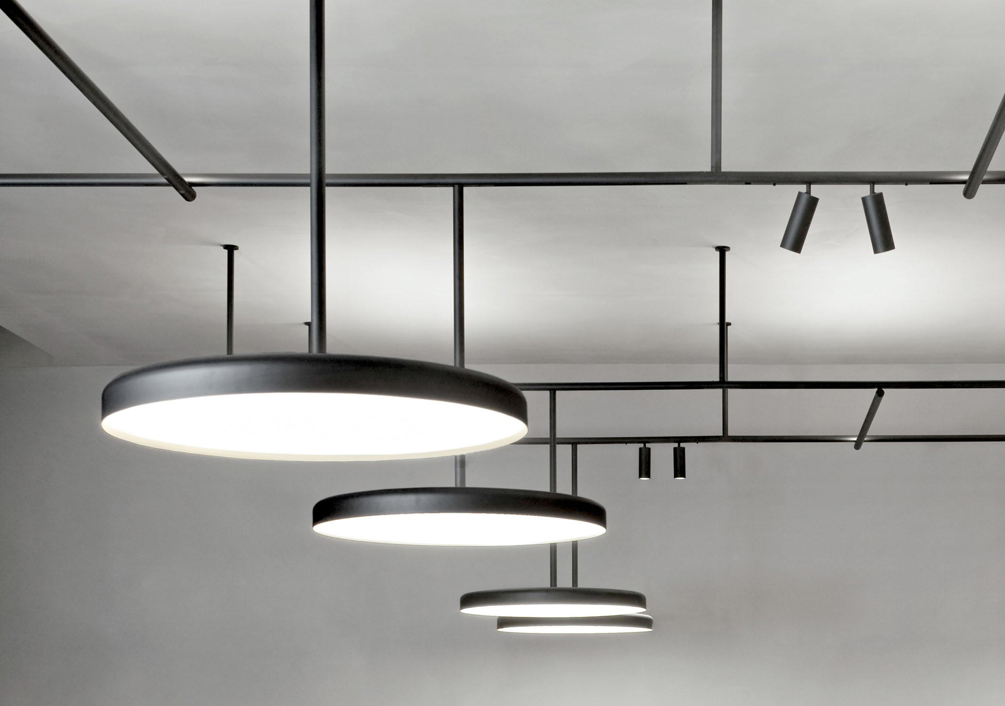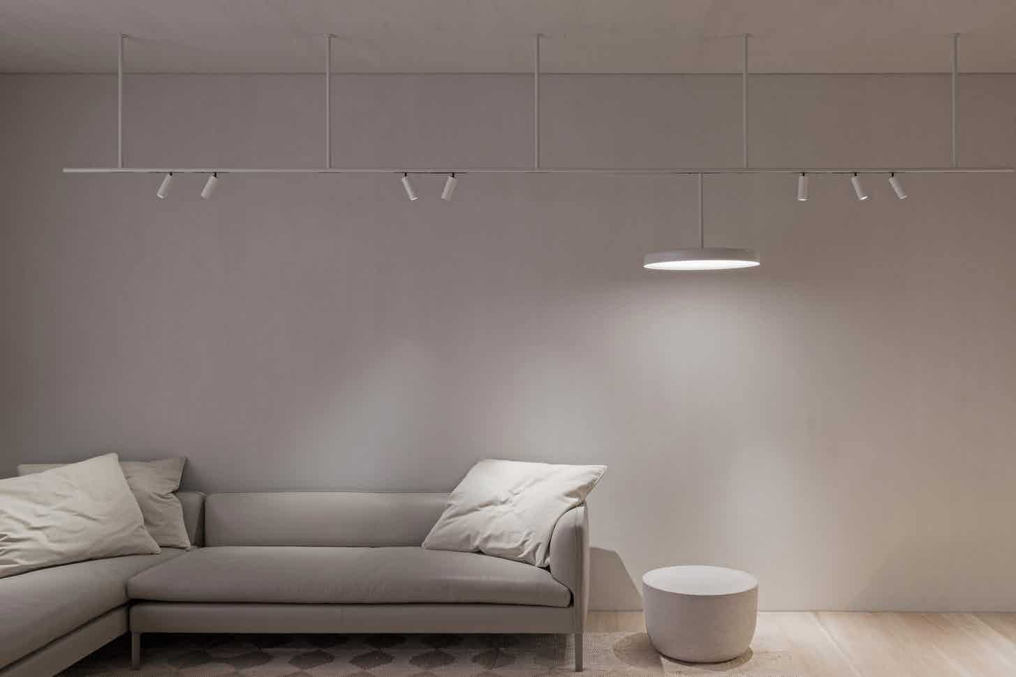 Tubular structure compatible with a wide range of light fixtures with magnetic fastening and mechanical safety locking. Regulation and control with universal protocols and using the FLOS SMART CONTROL? application.