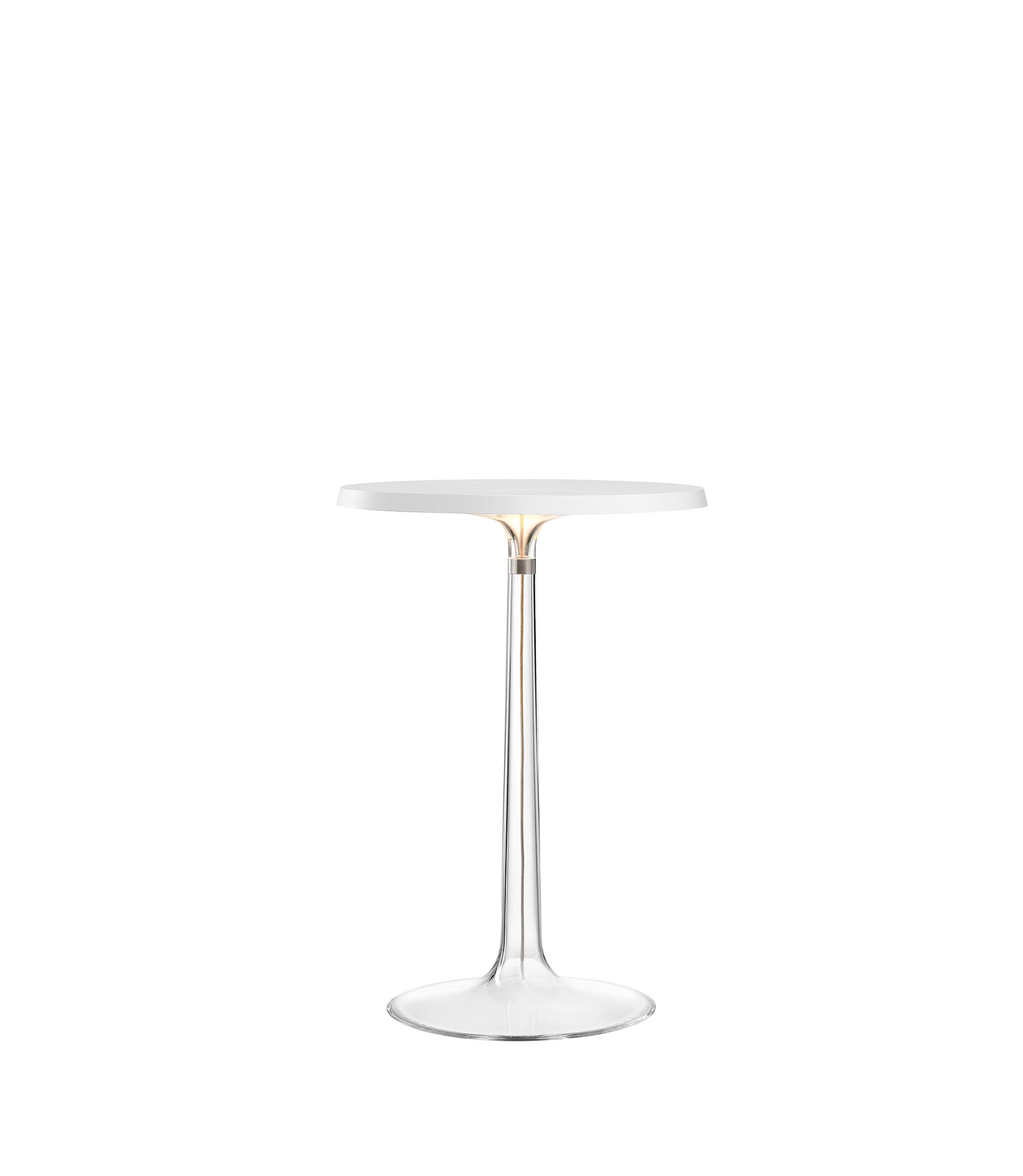 Table lamp providing diffuse light. Injection moulded PMMA clear transparent base and diffuser. Edge Lighting technology light source. Power cord length 200 cm, with dimmer switch that provide ON-OFF functions and 10-100% light adjustment. Plug-in power supply with interchangeable plugs.