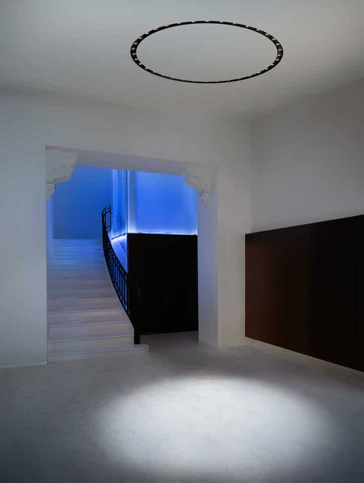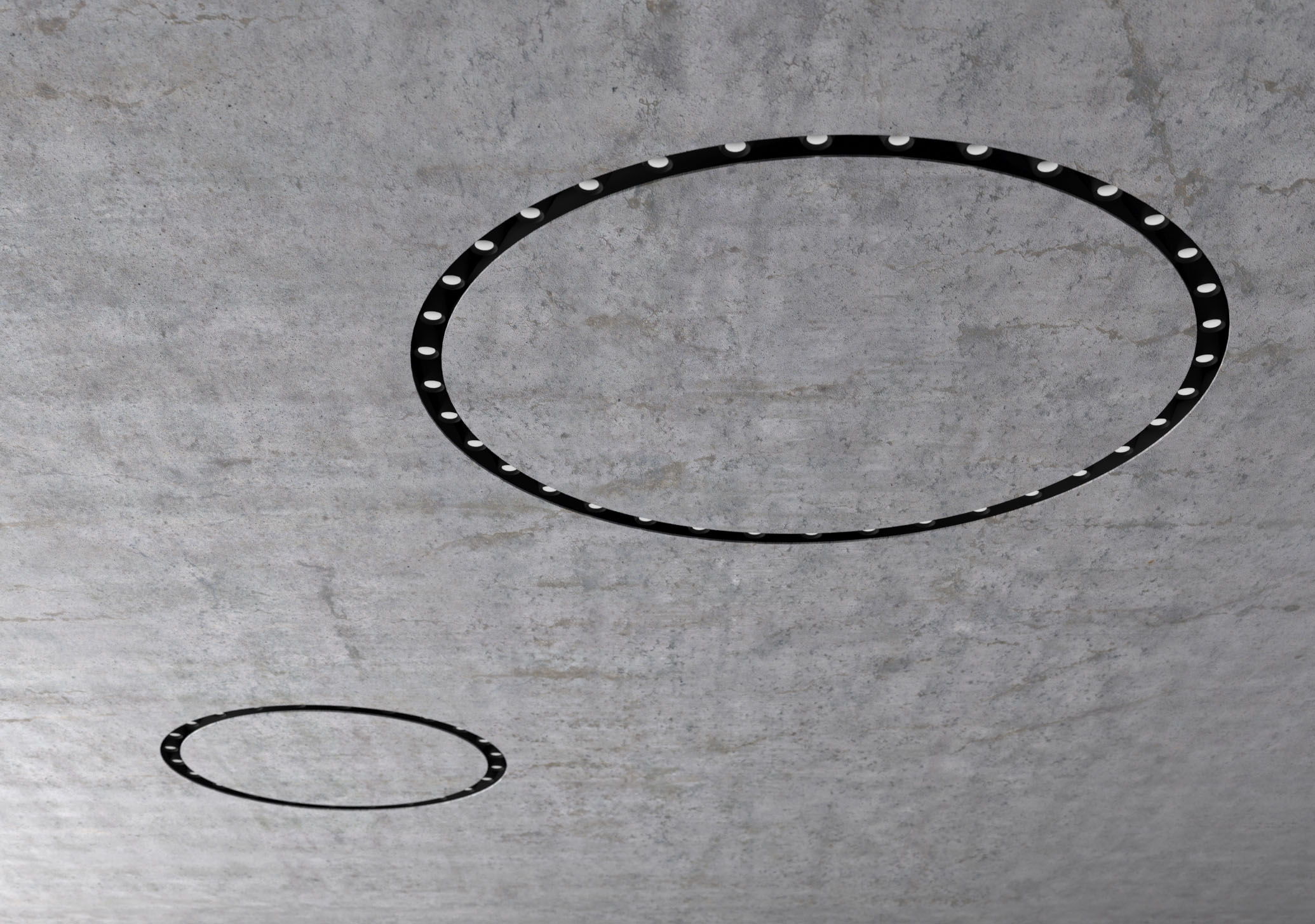 Family of circular ceiling-mounted recessed luminaires, which are totally integrated owing to Soft Architecture technology. The Circle of Light is comprised of an outer frame made with composite that houses a metal structure. This, in turn, acts as support for the latest generation LED spotlights. Its lenses optimise the luminous performance of the luminaire together with anti-glare cones that guarantee high visual comfort.
