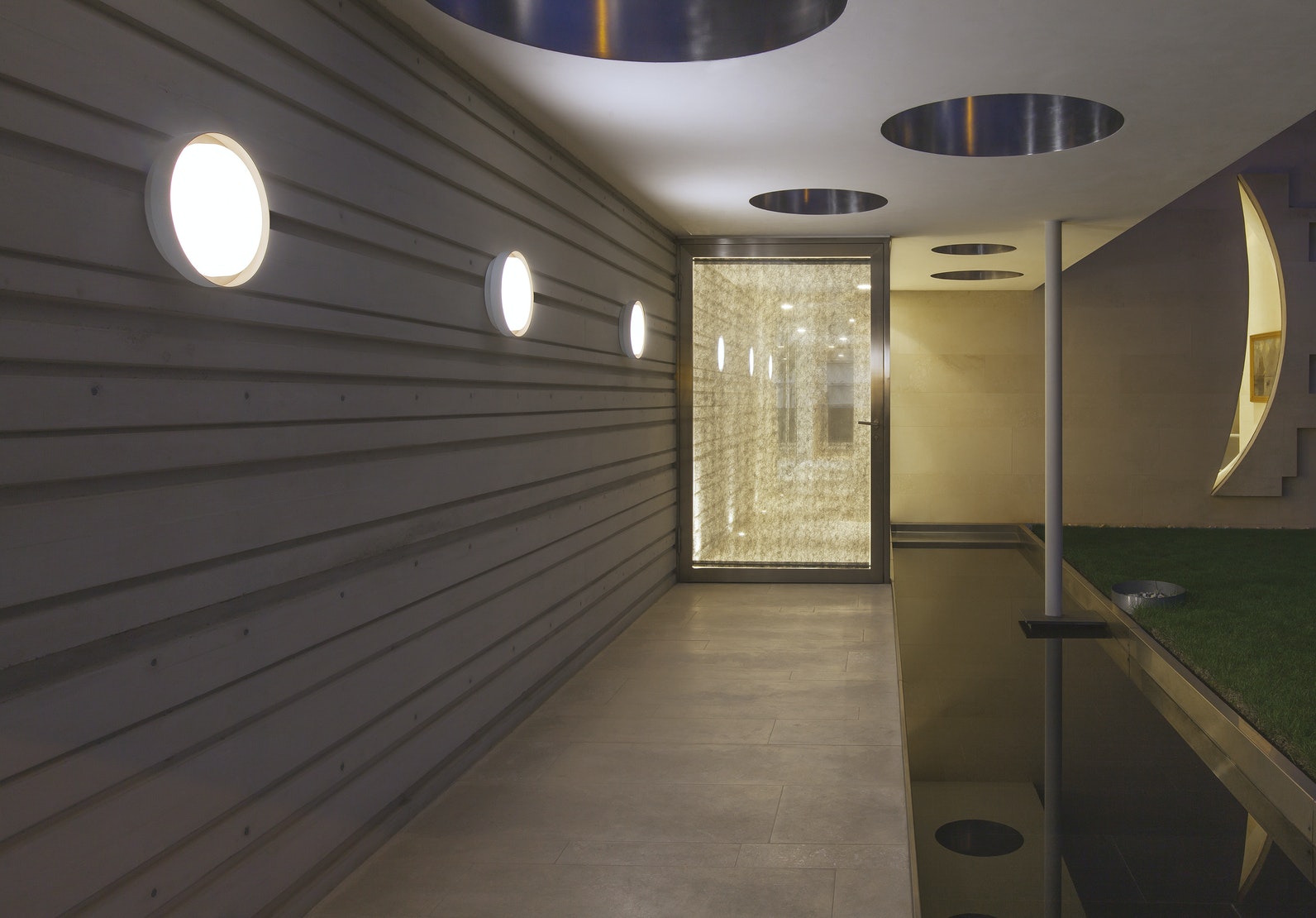 Round luminaire for rose, wall or ceiling installation, available in three sizes.
