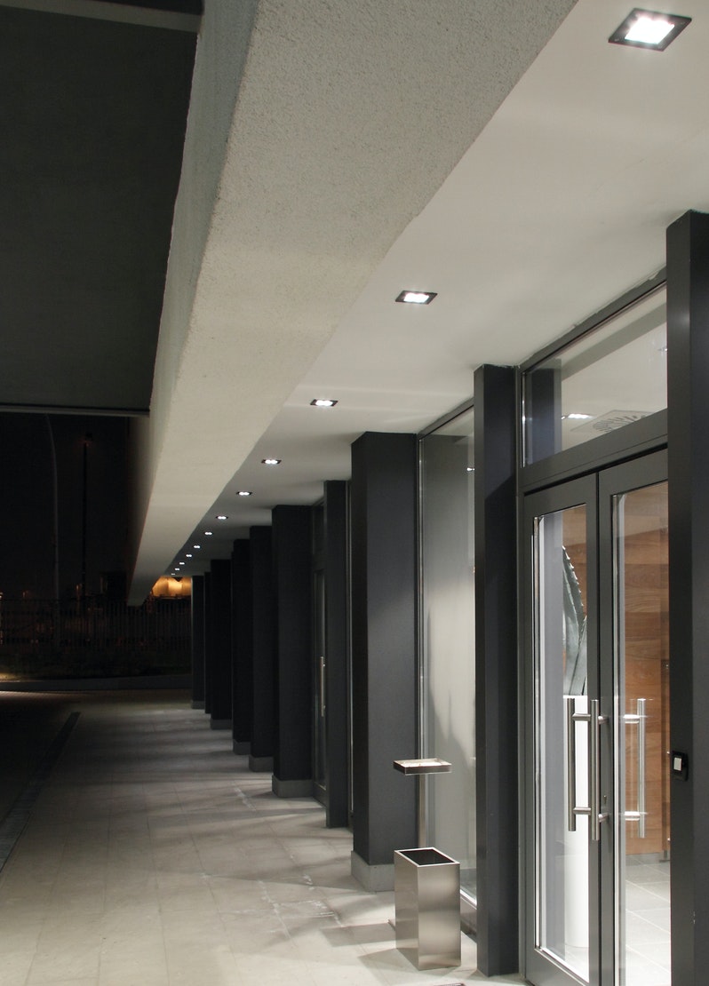 Transparent or sandblasted glass diffuser, fixed through a robotic gluing system. It can be installed in false ceilings through the dedicated fixing brackets, and in brick ceilings through the optional dedicated box.