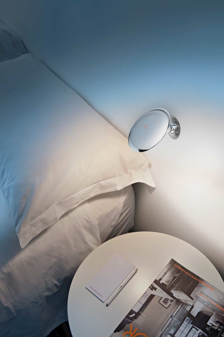 Range of small, LED lighting devices designed for wall mounting. Any of the fittings in the range can be coupled, all being extremely small in size, with the single recessed standard casing containing the lamp’s electronics.
