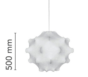 Suspension lamp providing diffused light. White powder coated internal steel structure sprayed with a unique cocoon resin to create the diffuser which is then protected by a transparent sprayed on finish.