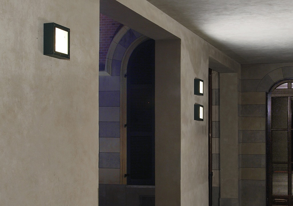 Square luminaire for wall or ceiling installation, available in two sizes.Transparent or sandblasted glass diffuser, fixed through a robotic gluing system.