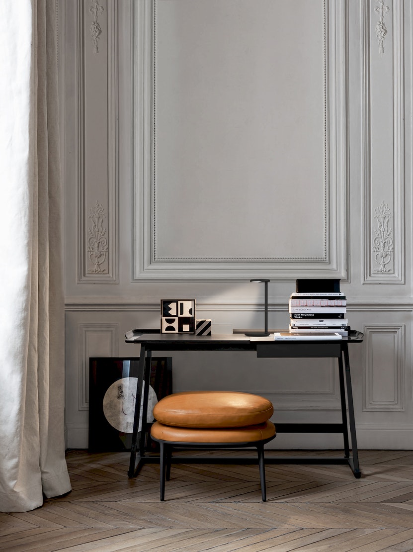 Revolutionary table lamp, it is the natural evolution of the classic office swing arm model. With its robust, compact structure and timeless design, it produces a patented, very powerful and controlled asymmetric light beam, perfect for professional lighting of the work area.