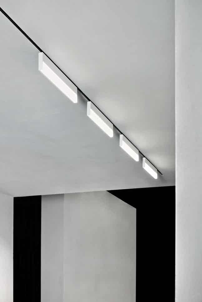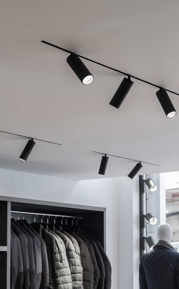 3-phase rail with reduced dimensions in its recessed and surface version. Compatible with a compact and powerful light fixture program. High efficiency reflectors.
