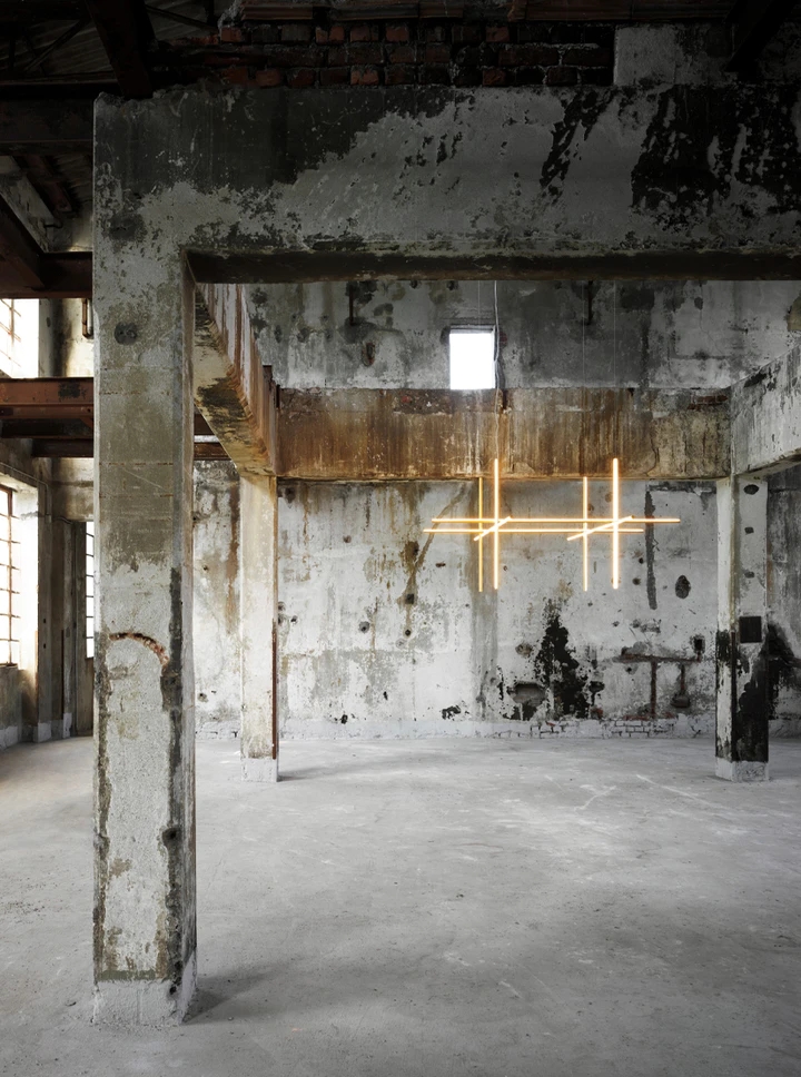 Each element of this model is made of extruded anodized aluminium with a champagne finish and a diffuser with an integrated LED strip.