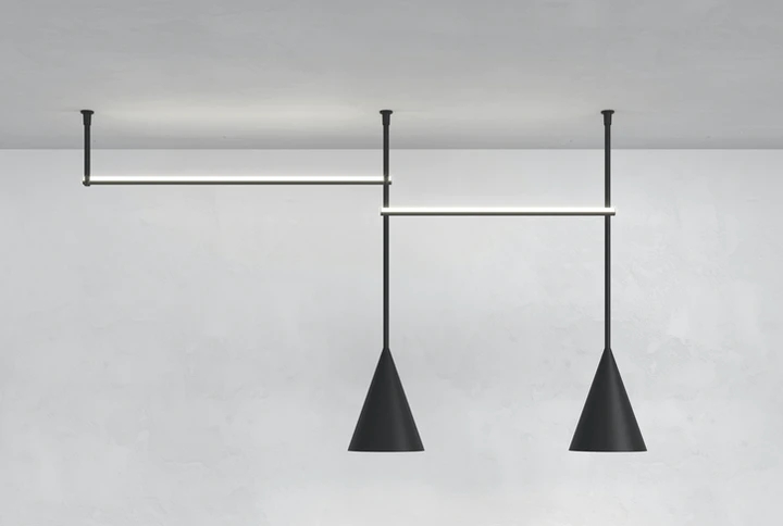 Subtle, incredibly versatile tubular structure. Thanks to a special connection system, it is possible to combine vertical and horizontal elements to create three-dimensional combinations in infinite variations using linear and geometric modules.