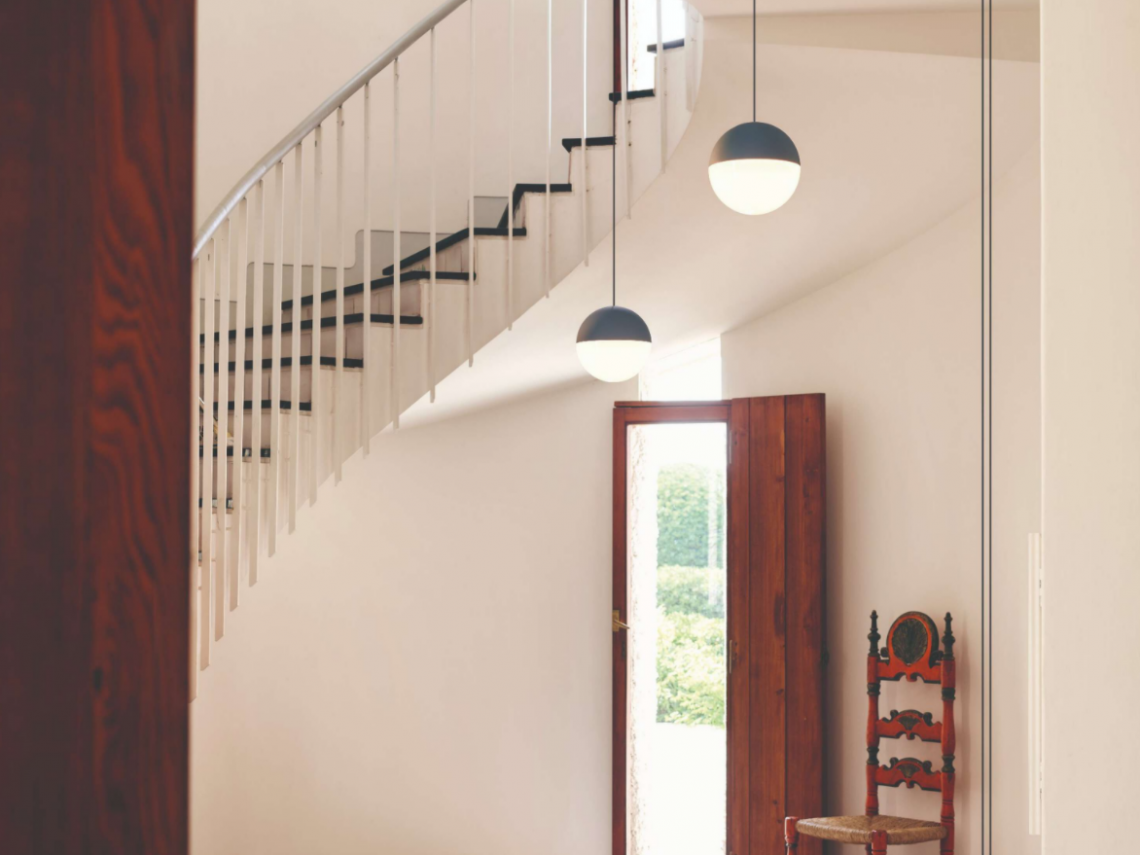 Suspension lamp providing diffused light. Black, white or blue varnished die-cast aluminium body coated with clear soft-touch varnish. Optical diffuser in opal PC. Suspension system of 12 metres with Kevlar reinforced coaxial cable. Available with wall/ceiling connection in black PC and power supply with floor switch in black varnished PC. The on/off switch is electronic with optical and touch dimm mechanism included or touch dimm and CASAMBI Ready version. Dimmer included. Compulsory to add either floor switch or ceiling/wall rose.