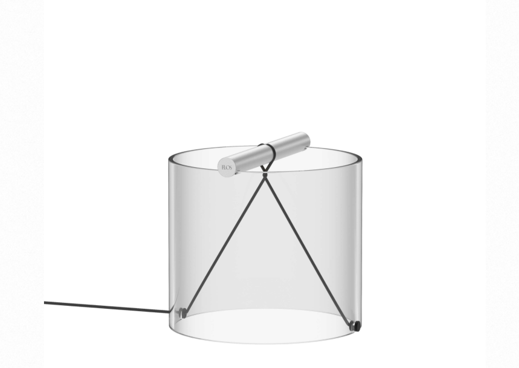 Designed by Guglielmo PolettiTable lamp providing diffused light. Clear glass cylindrical lamp body available in multiple sizes. The handle is made of aluminum and also acts as a light emitter. Multi-led diffuser in specially designed white polycarbonate to avoid the Multi Shadow effect and dazzle. High efficiency LED source with a lifetime of more than 50.000 hours. Electric cable of useful length 180 cm, covered in black fabric and equipped with dimmer switch for ON/OFF and adjustment of the light flow between 10-100%. Plug-in power supply with interchangeable plugs. To-Tie is a future-proof lamp as no glue is used to assemble its different parts. The product can therefore be separated, replaced individually, and recycled separately.