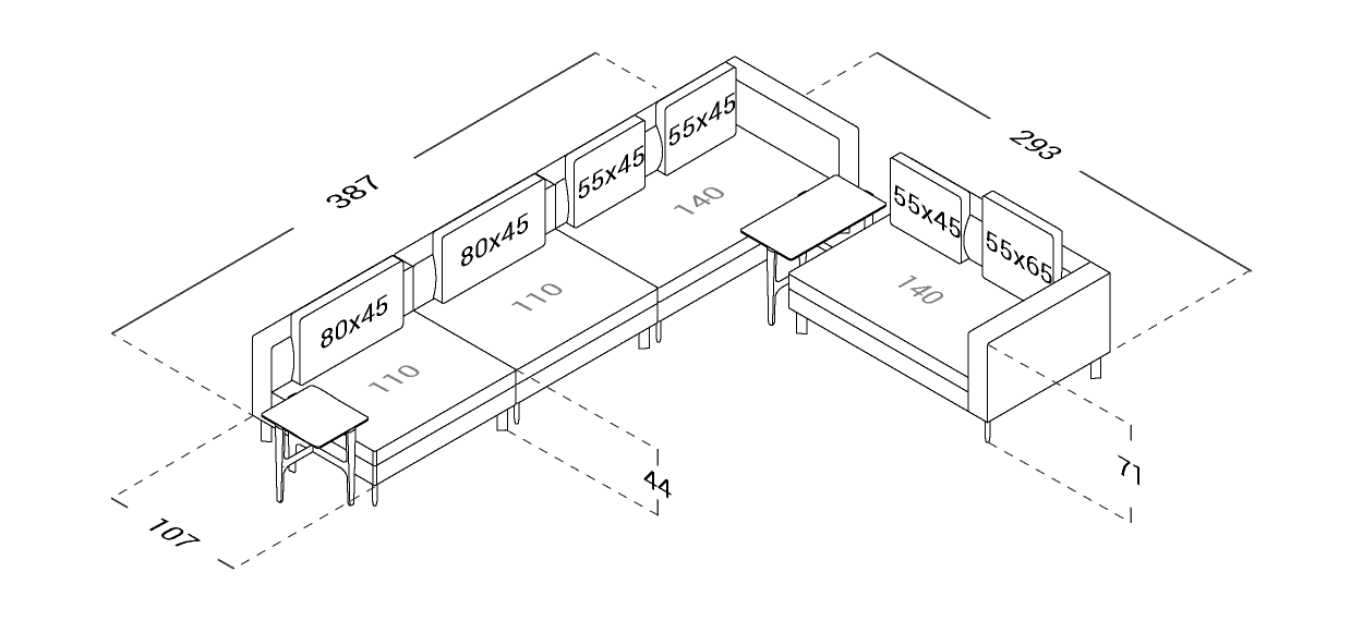 Tay沙發完美地詮釋了將沙發作為在生活區域中注意力集中點的作用,使其成為空間的聚集中心和社交點。構成它的元素由4個基本模塊組成。靠背墊和座墊擁有不同的尺寸和形狀,以便為最靈活和多樣的組合物提供最廣泛的自由度:或線條搭配,或角度組合,有或沒有靠背,帶或不帶扶手,帶有側向躺椅延伸部分等等。主體由鋁制支腳支撐。可完全拆卸的包皮層可以是織物,真皮革或Dollar 人造革。為了保證座墊的卓越舒適性,使用memoform創造的內部填充軟芯,使其更加溫馨。為了實現構圖的完整性,舒適的靠墊和裝飾墊可供選擇,也可以用可拆卸的面料,皮革或人造皮革覆蓋。