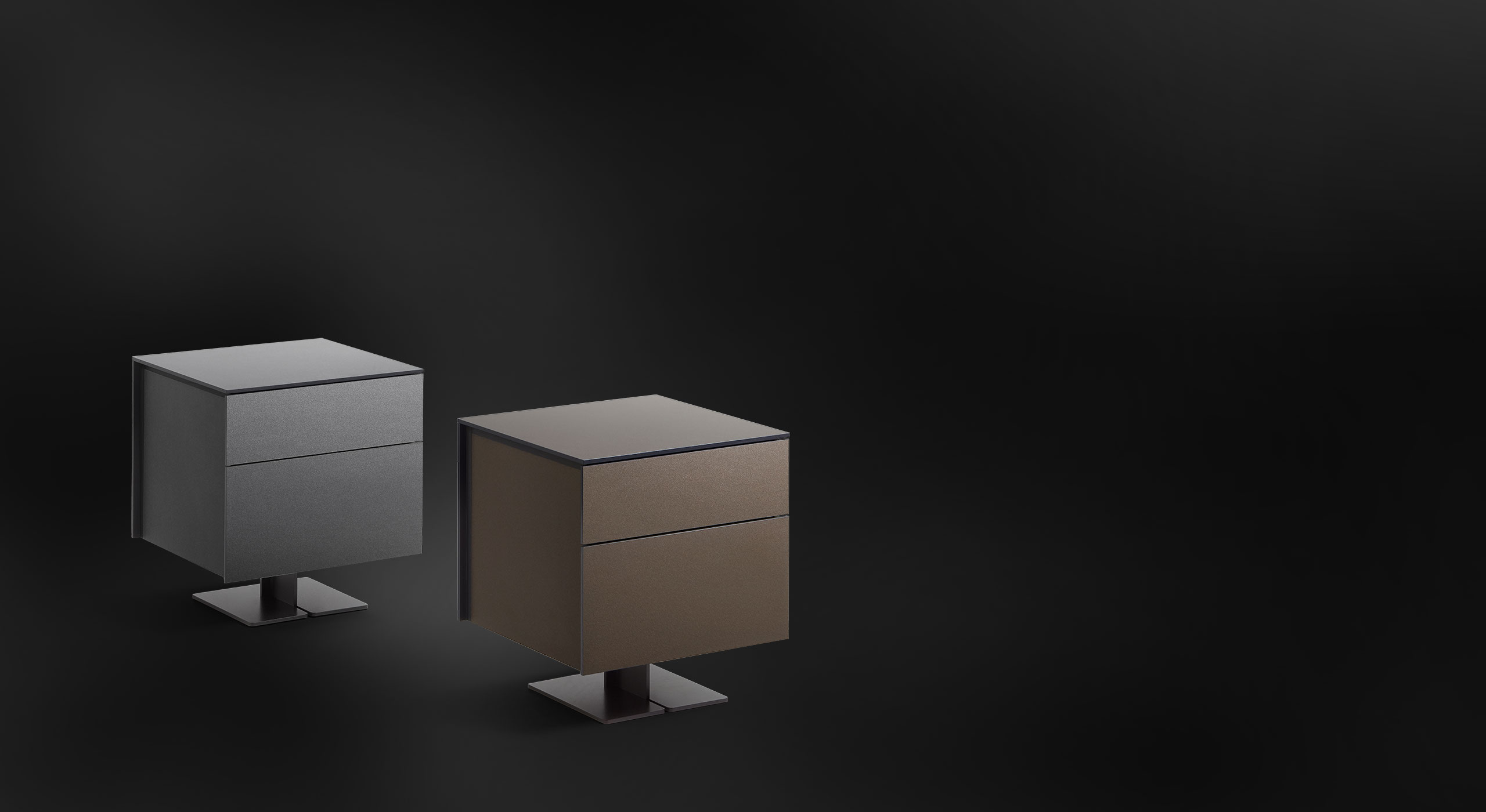 兩個(gè)抽屜的儲(chǔ)物層可以裝飾白色、砂礫色、青銅色、深灰色、亞麻色、鉛灰色的啞光漆面或者Style, Epoque, River, Private和Saffiano防刮飾面。