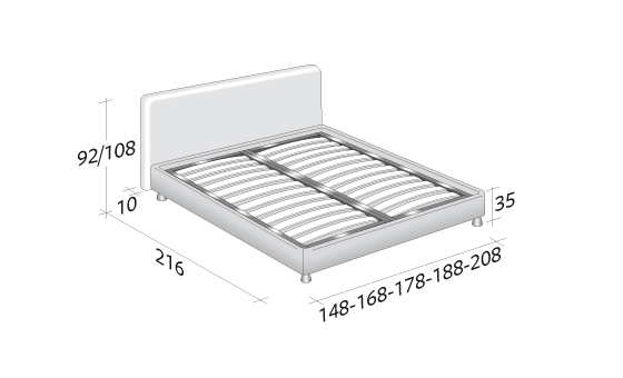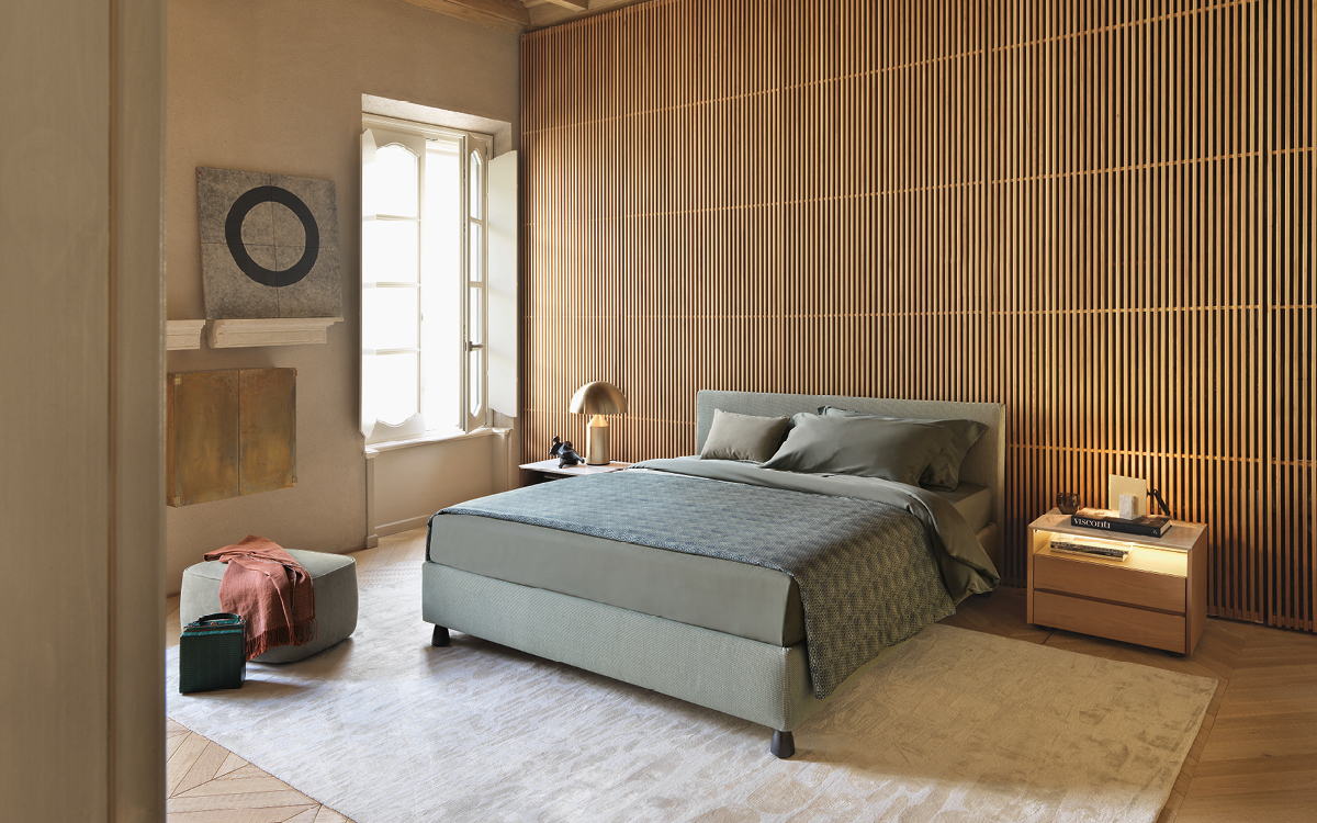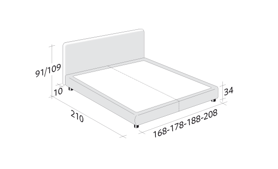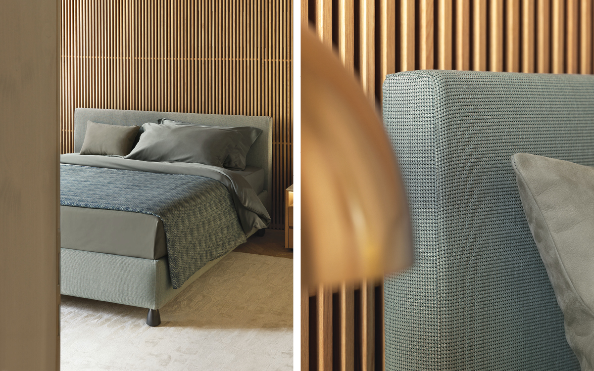 擁有簡單和精美的線條的床。可提供 Leonardo 床架,25厘米或h16厘米高的固定底座, 和帶電動網的底座。 底座和床頭板有兩種高度可供選擇,有魔術貼粘粘,可拆卸面料,皮革或人造革。