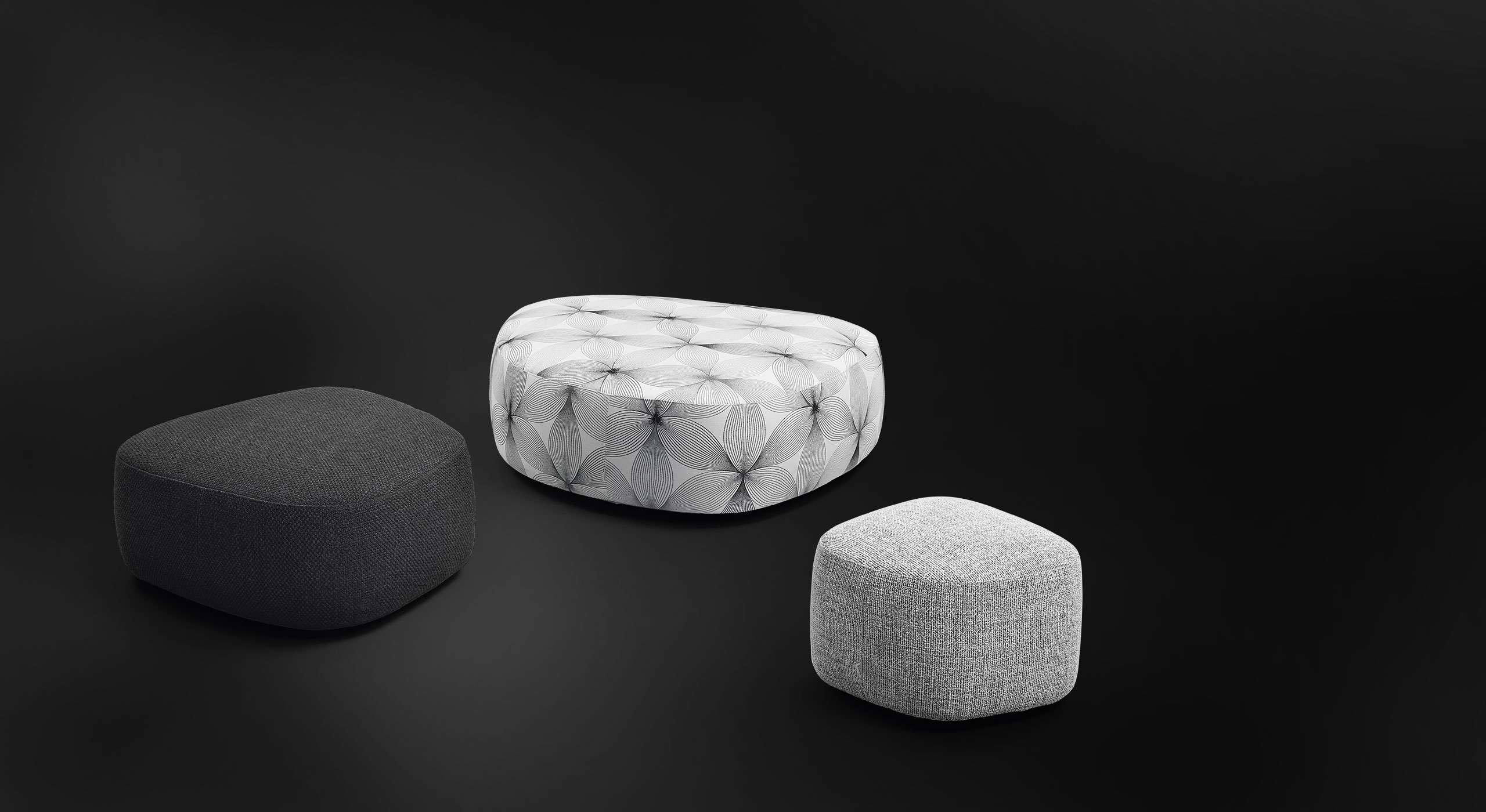 三種不同尺寸的蒲團(tuán)擁有不規(guī)則卻流暢的形狀,不禁使人想起沙灘上那些被海浪磨平了棱角的石子。