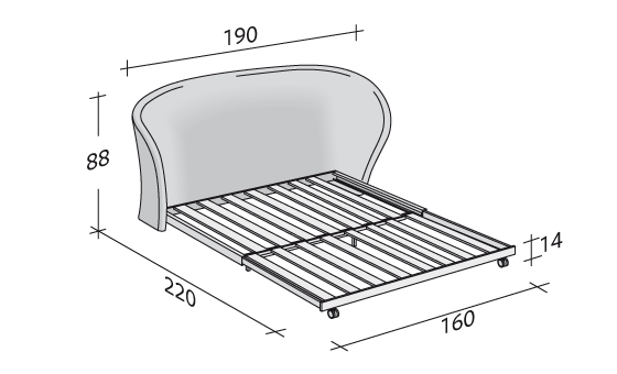 Celine 分兩種設計:一種是可變出單人床的沙發椅 (90X200 cm), 另一種是可變成雙人床的沙發 (160x200 cm)。