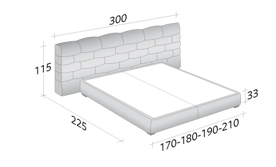 床頭有兩種規格: 與床同寬,或兩側超出床寬。Majal 床的罩物可選織物面料或真皮,均能很方便地拆卸。
