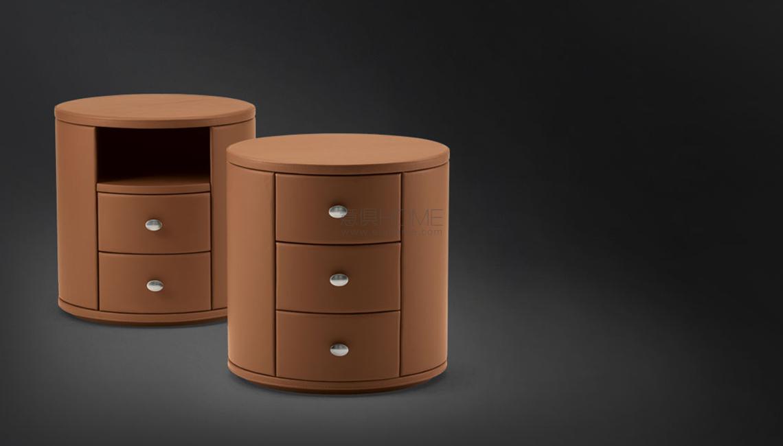 帶有兩個或三個抽拉式抽屜的圓形床頭柜,內部加工為白樺木材,帶有減震的返回裝置。