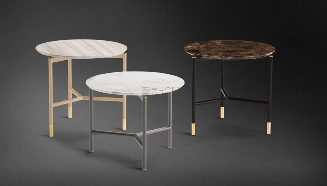鋼管結(jié)構(gòu),桌腳呈圓柱形,或帶有按鈕,面板則為大理石材質(zhì)。