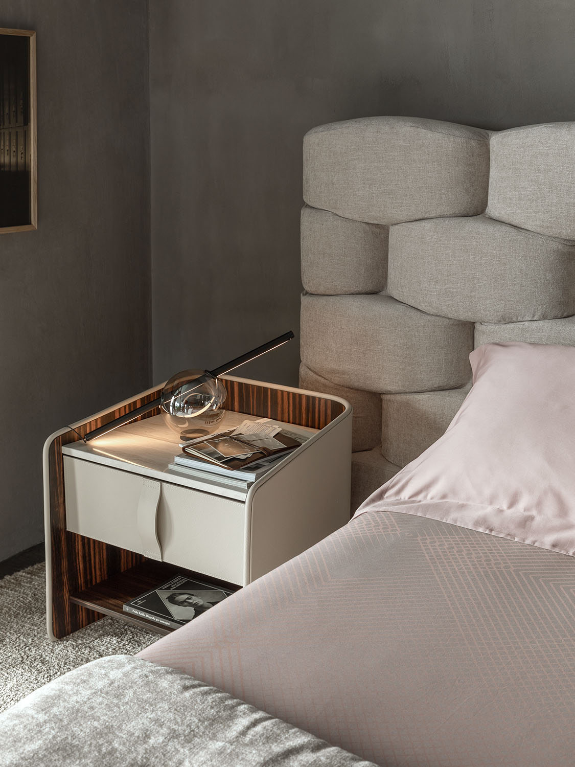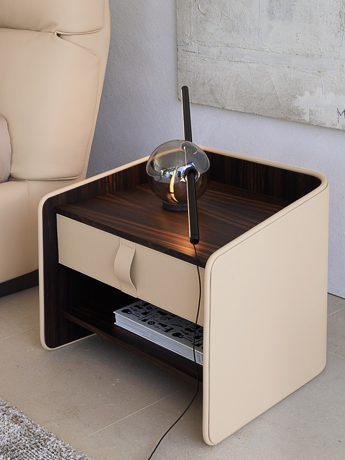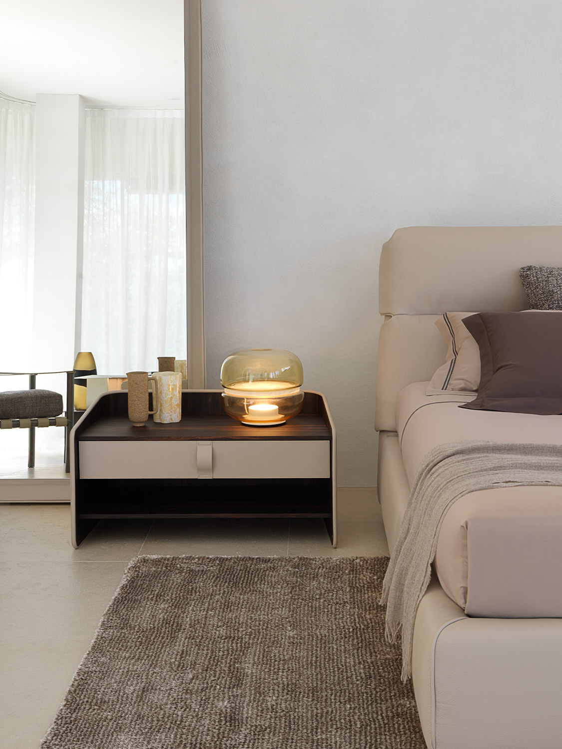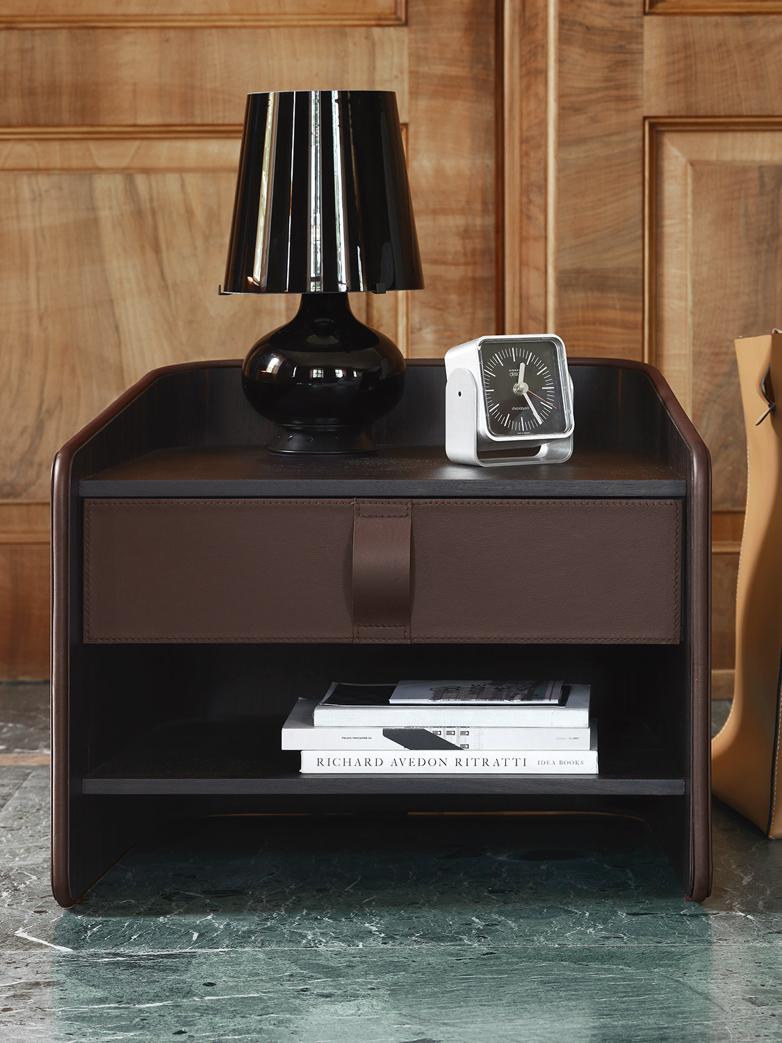 Gentleman餐具柜由兩扇門、抽屜和開放式隔層組成,內部為烏木,外部為新款羅馬帝國大理石。這款大理石精選自巴西,表面有不規則的紋理,暖色系焦糖色。它是以工匠技藝精心打造的珍貴材料,傾注了我們的熱情、精細和對細節的極致追求。這也就是為什么Gentleman系列的每件作品都可被譽為“獨件”。
