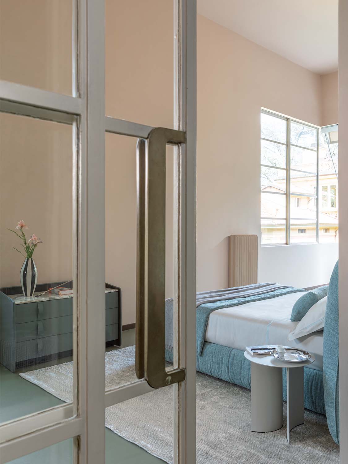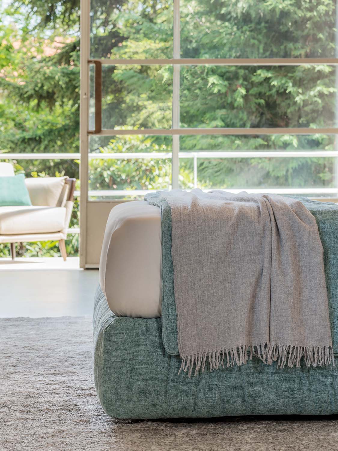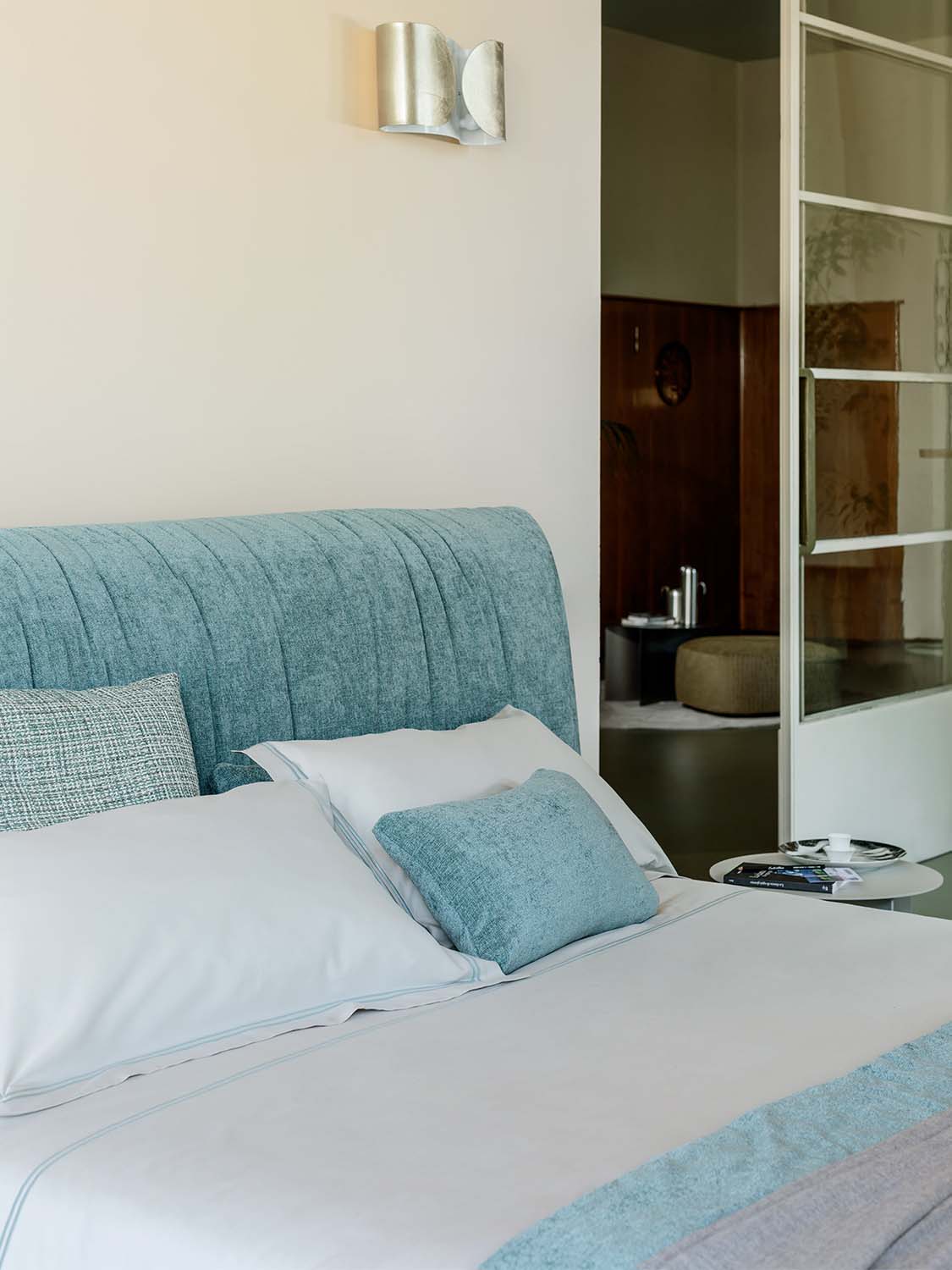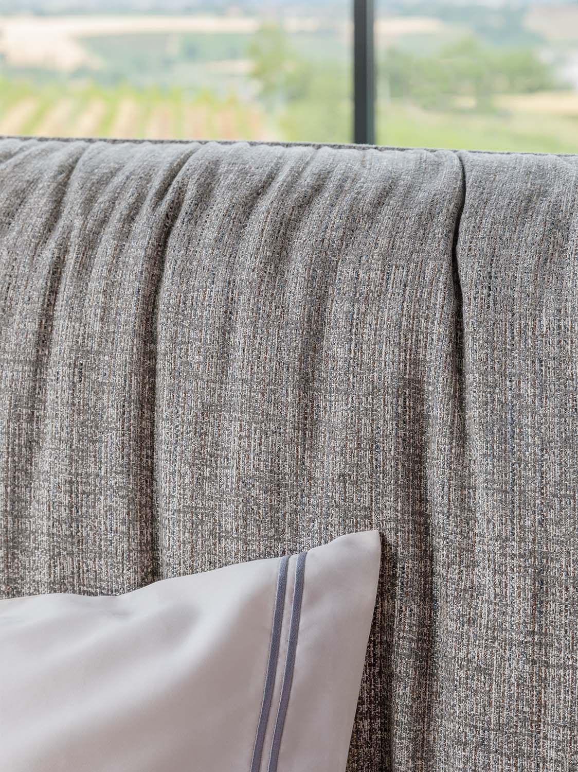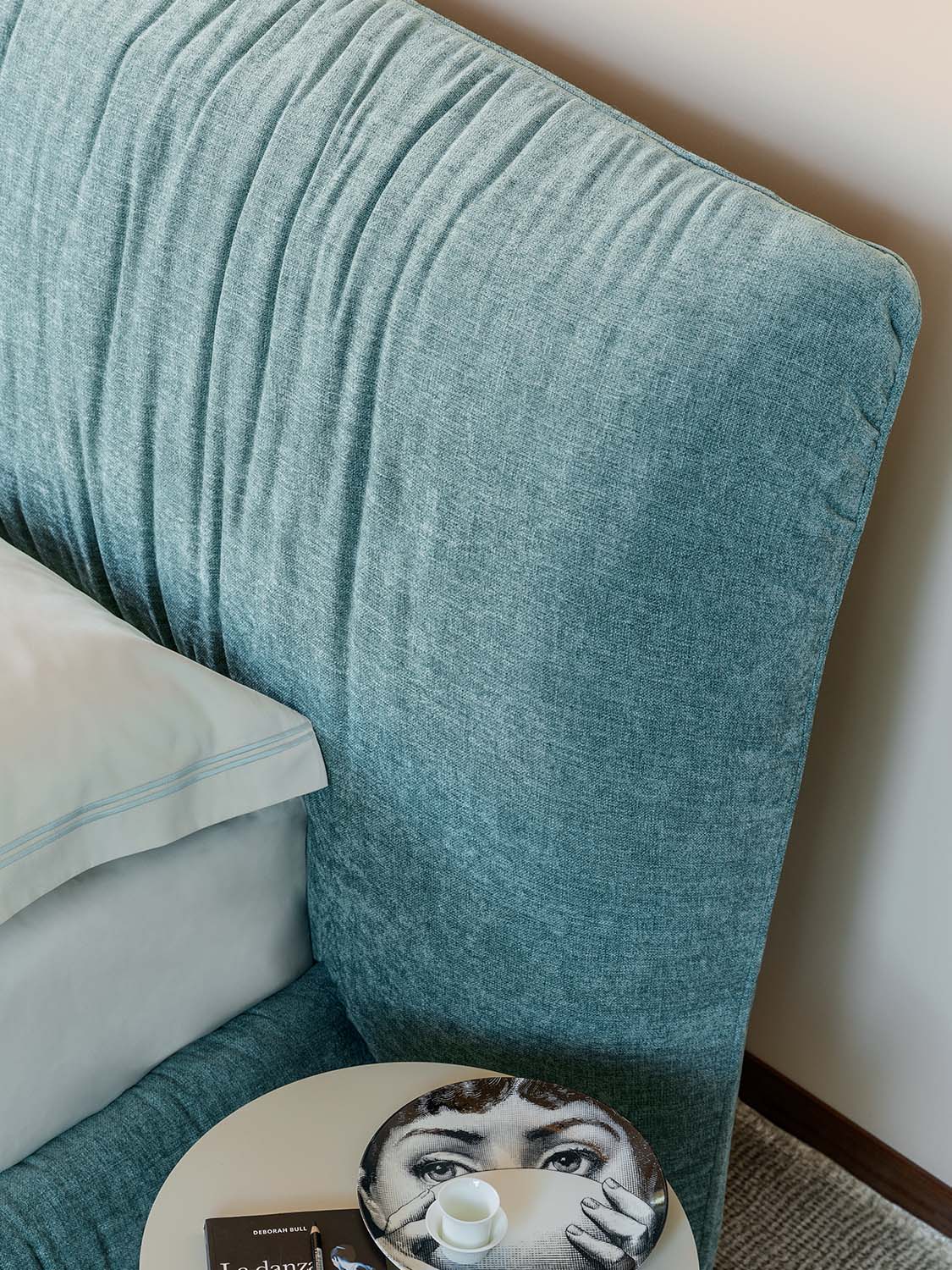 我嘗試用蘊含品牌DNA的語言設計一款滿足需求的床款,給人以舒適柔軟的感受,特別是床頭,其適合倚靠。由此Layla誕生了,它是Flou一款獨具特色的產品。床頭和沙發床的簡潔風格相得益彰。Flou所有經典床款的填充料和罩面都可以選擇,比如床頭部分,可以選用可拆卸布料或者皮料。兩側延展的高床頭雙人床,和沙發床一樣,可選擇可拆卸布料或者皮料作為填充料和罩面。沙發床的底座可選Leonardo底座、可調節橫條床架收納式底座、H25橫條床架底座,以及Motion 4活動床架底座。寬大床頭適合搭配兩個床頭柜,打造更為私密的休息空間。厚實松軟的填充料也是這款產品的一大亮點,提供舒適愜意的支撐,罩面也采用柔軟質地,延續這種放松的氛圍。