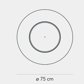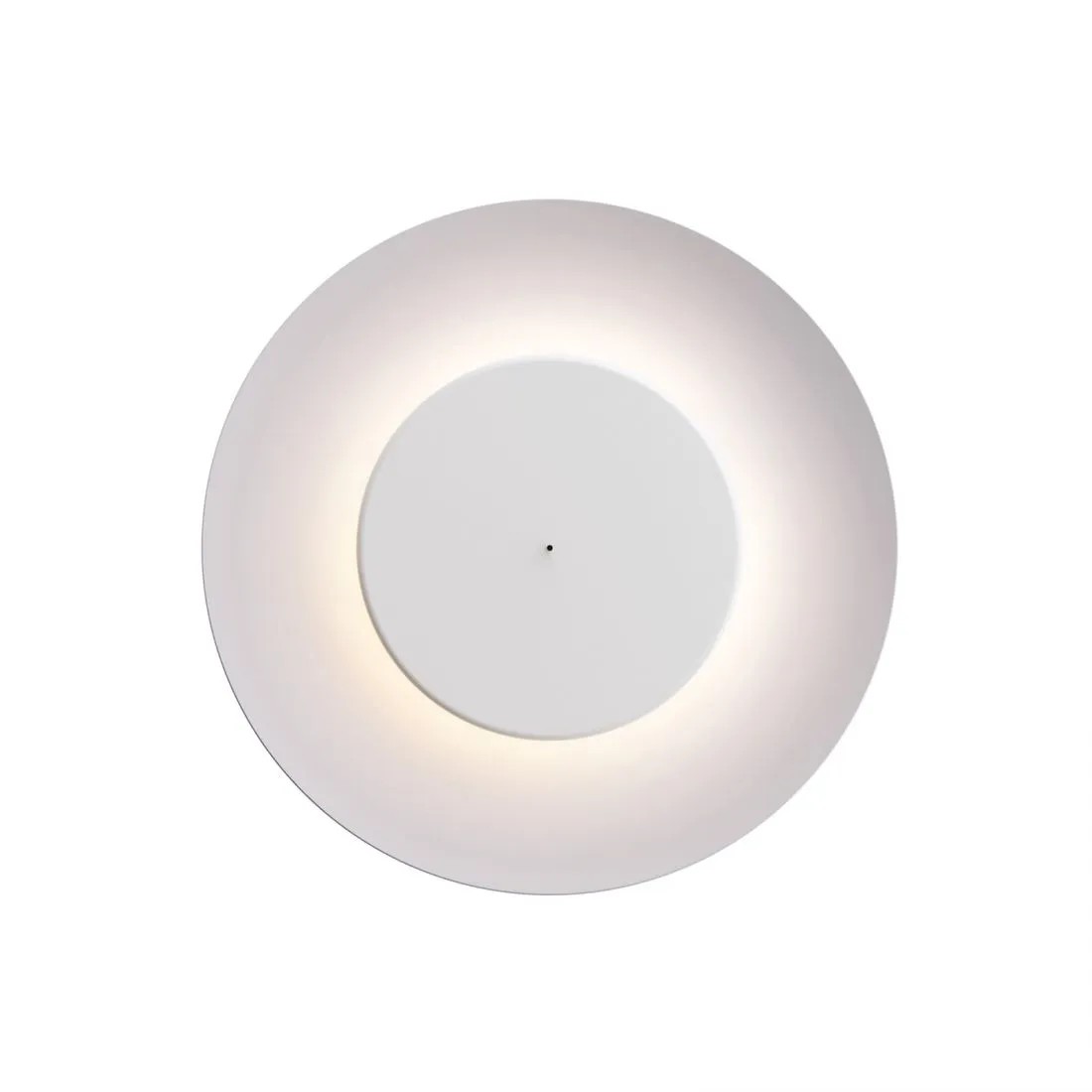 Un grande riflettore in alluminio dalla forma concava ospita al suo interno un disco frontale più piccolo; quest'ultimo, che alloggia al suo interno la fonte luminosa, produce una luce diversa in base a come si posiziona rispetto al diffusore: diffondente posteriore quando il disco frontale è chiuso cioè spinto verso il muro; si sprigiona frontalmente, riflettendosi sul diffusore, quando è aperto. In modo semplice e immediato si agisce sul perno frontale, tirandolo verso di se oppure spingendolo verso il muro, per avere la luce più adatta rispetto alle esigenze del momento. Lunaire, grazie al generoso diametro del diffusore, è una lampada adatta all'illuminazione di grandi spazi, siano essi domestici o in ambito contract.