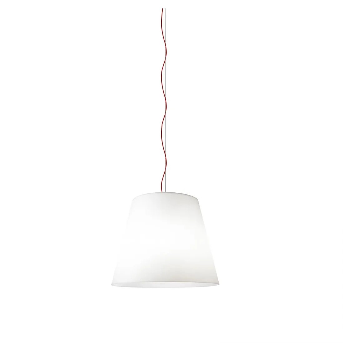 Interpretazione extralarge del classico paralume FontanaArte, Amax è una famiglia di lampade da sospensione che prevede, nelle misure più grandi, un disco di chiusura inferiore che copre la vista delle sorgenti luminose.
