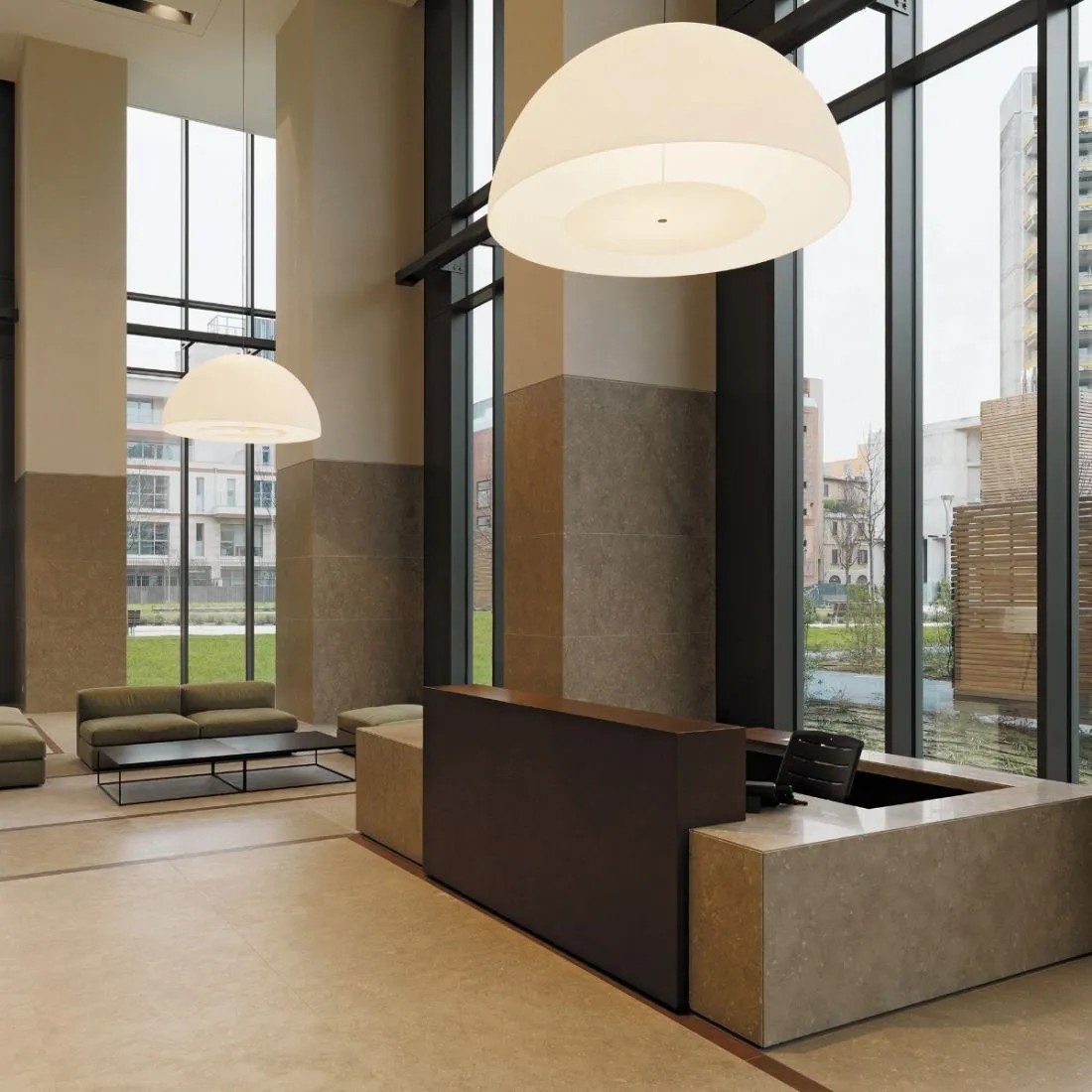 Lampada a sospensione dal grande impatto scenico grazie ai due diametri disponibili (da 120 e 160 centimetri). Diffusore su richiesta anche argento e oro. E' possibile acquistare separatamente un disco di chiusura inferiore per coprire la vista delle sorgenti luminose.
