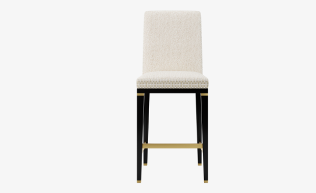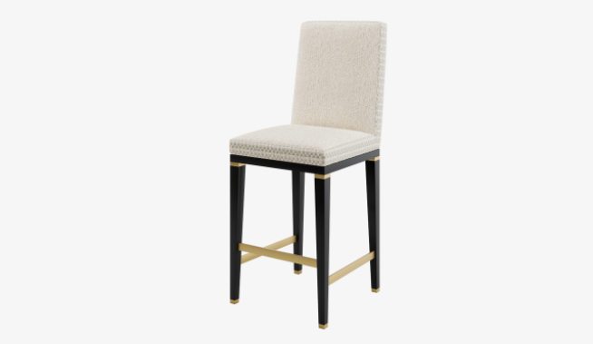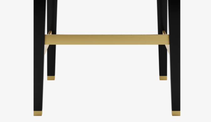 The AZZURE bar stool conveys a desirable art deco vibe thanks to its carefully selected palette. The upholstery blends lavish velvet with a fashionable tweed, while the legs and frame fuse gleaming brushed brass with glossy black lacquer, all to dramatic effect.