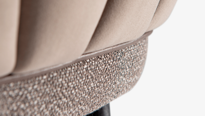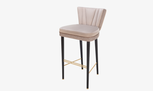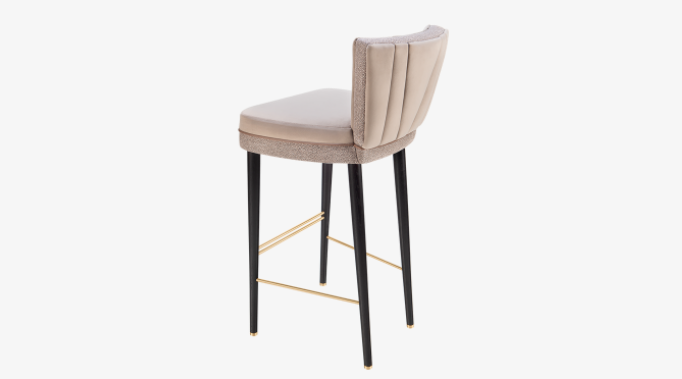 With its cinched-in corset-style silhouette, there's something undeniably feminine about the captivating BELFAST bar stool. Contrasting smooth velvet upholstery with textured fabric and leather piping, the design's long legs are crafted from solid wood and embellished with elements of shimmering brushed brass.