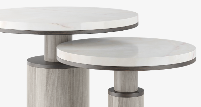 A stylish double act, the BERLIN Side Table’s two volumes feature stone surfaces, wood veneer pedestals and brushed-brass details. Playing with different proportions, they’re presented in a way that is pleasingly similar yet intriguingly different.