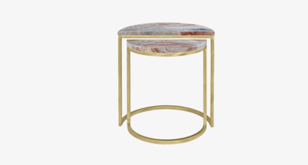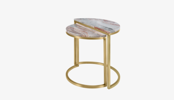 Two independent halves make up the captivating CABOCHON side table, which features a brushed-brass base and crescent-shaped surfaces of multicoloured stone. Position as a circle or nestle together.