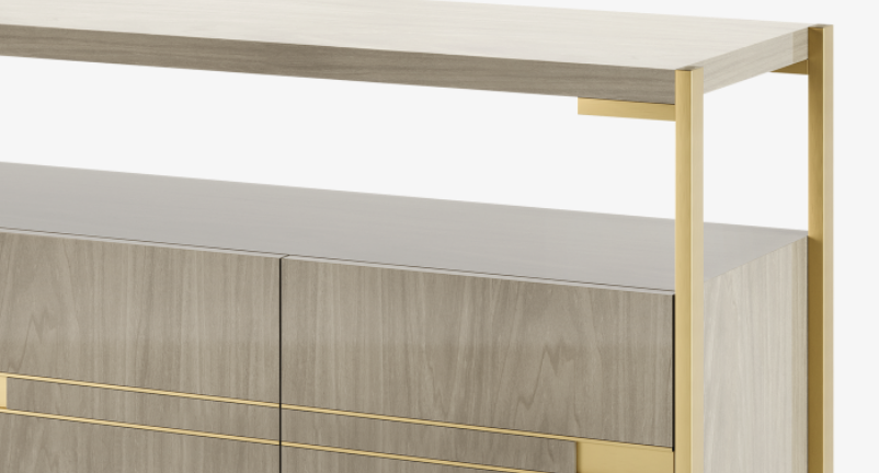 A distinguished combination of glossy wood veneer and brushed brass, the OTTAWA offers a mixture of open and closed storage, allowing you to conceal unsightly clutter from view while also showcasing favourite objets in a chic way.