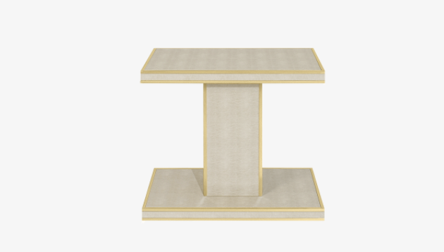 So much more than an add-on to your sofa, the striking CLEEF side table features a plinth-like silhouette and requires only two surface materials: textured leather neatly edged with brushed brass.